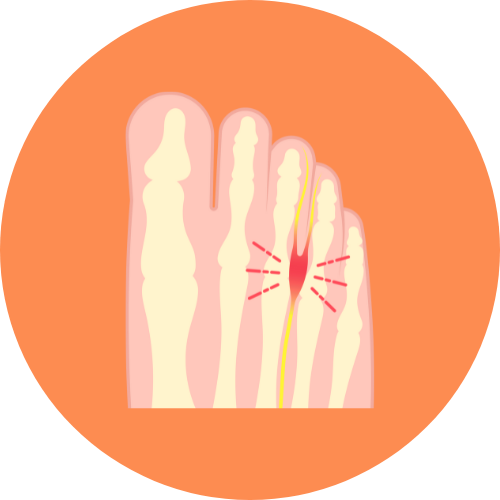 A thickening of the tissue around a nerve leading to the toes